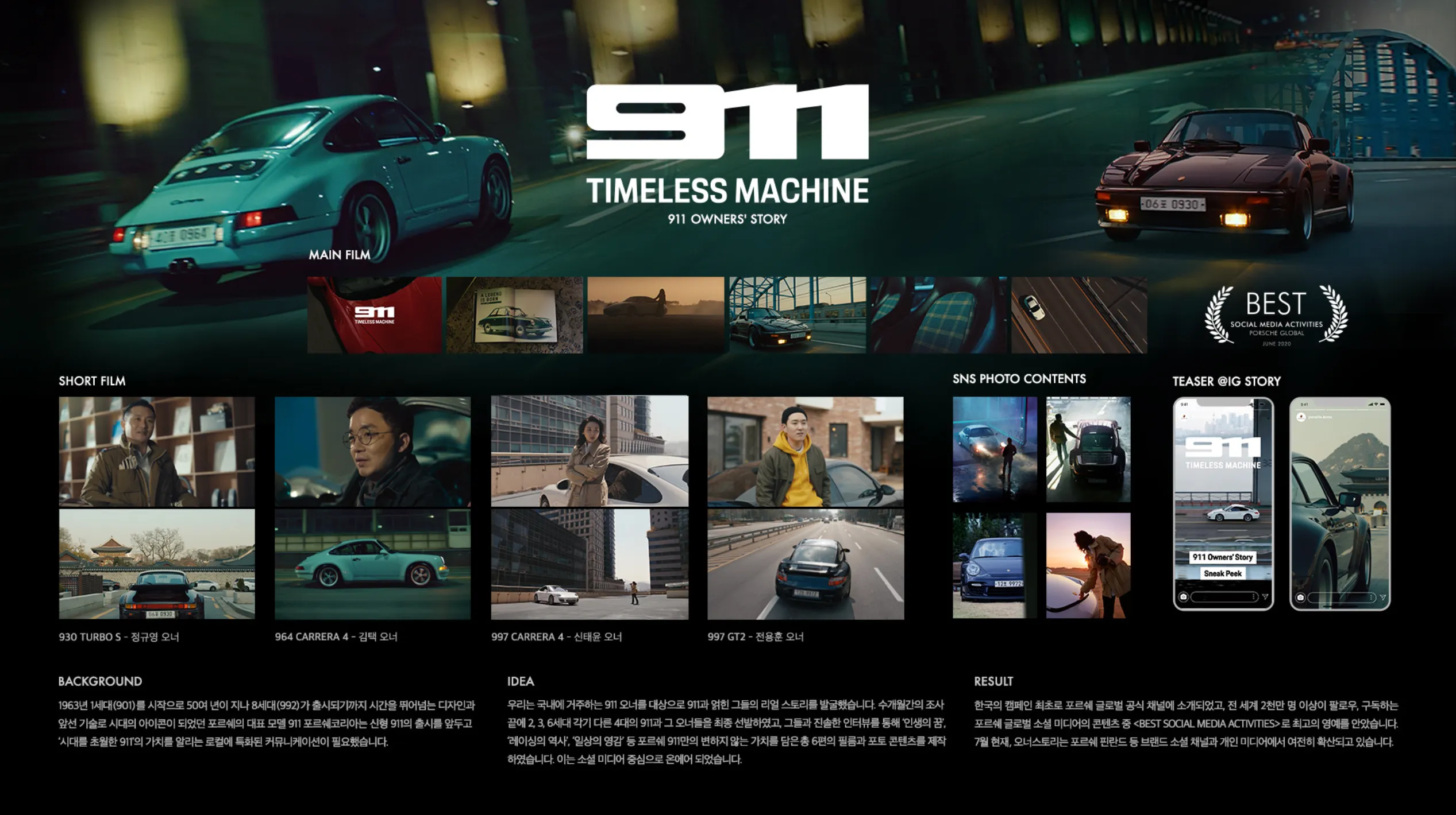 A. 당시 포르쉐 911의 글로벌 테마가 ‘타임리스 머신(Timeless Machine)’이었습니다. 시간이 흘러도 변하지 않는 가치였죠.
