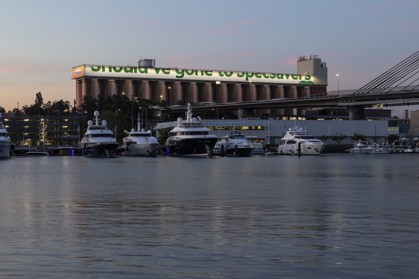 이번 캠페인의 무대는 호주 시드니의 '글리브 아일랜드 사이로(Glebe Island Silos)'입니다. 15개의 거대 곡물 저장고 위에 설치된 이 매체는 면적이 1,000㎡(약 300평)에 달하는 남반구 최대 규모의 광고판입니다. 보통의 브랜드라면 이 비싼 자리에 로고 하나라도 더 크게 넣으려 혈안이 되었겠지만, 스펙세이버스는 이 거대한 캔버스의 대부분을 '여백'으로 남겨두었습니다.