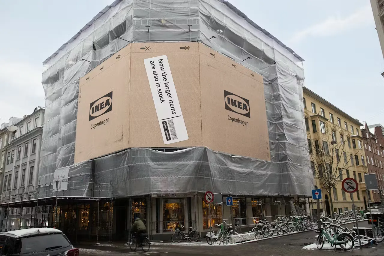 이케아가 선택한 방법은 의외로 단순했다. 코펜하겐 시내 버스, 버스 정류장 광고 쉘터, 건물을 감싼 비계 천막을 전부 이케아 특유의 갈색 골판지 박스 그래픽으로 감쌌다. 마치 도시 전체가 이케아 택배를 기다리는 것처럼.